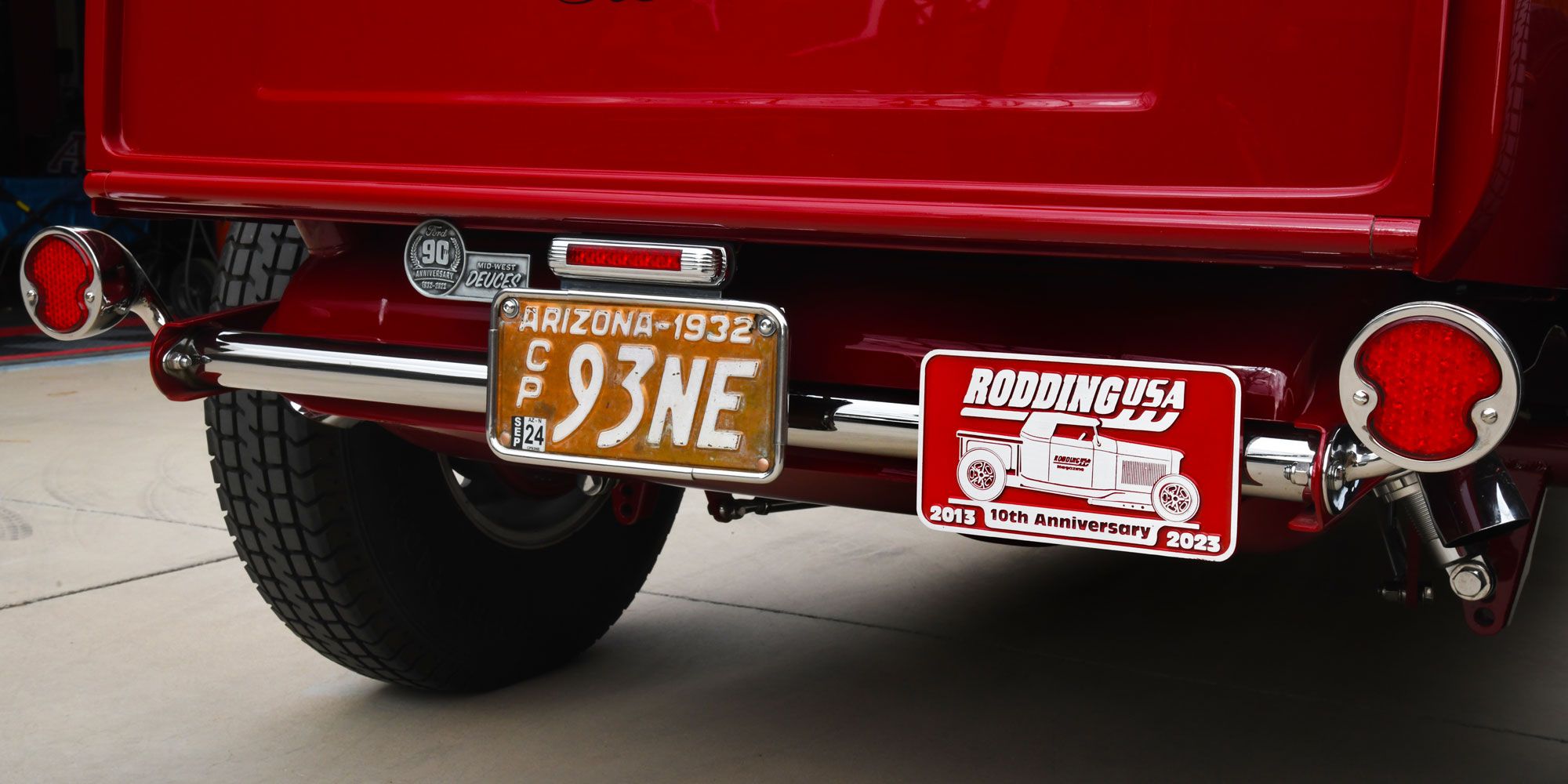 To celebrate the 10th Anniversary of Rodding USA, O’Brien Truckers have produced an aluminum car plaque for us. The limited-edition plaques are ¼-inch sand castings, measure 5” x 9”, and are painted red.